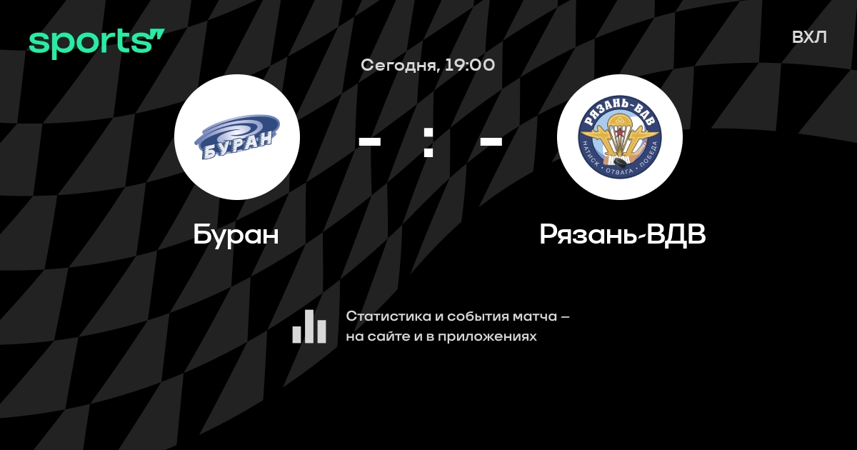 В предстоящем матче в рамках турнира ВХЛ пройдет встреча команд Буран - Рязань-ВДВ в городе на стадионе Mau Sk Yubileynyy.