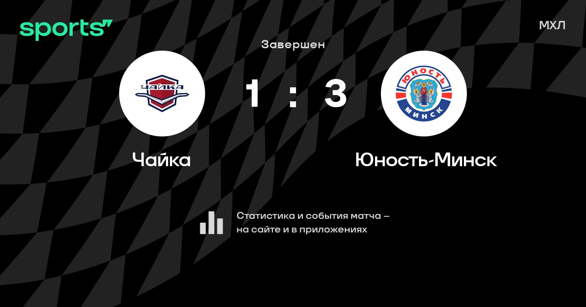 В прошедшем матче в рамках турнира МХЛ состоялась встреча команд Чайка - Юность-Минск со счетом 1 : 3.