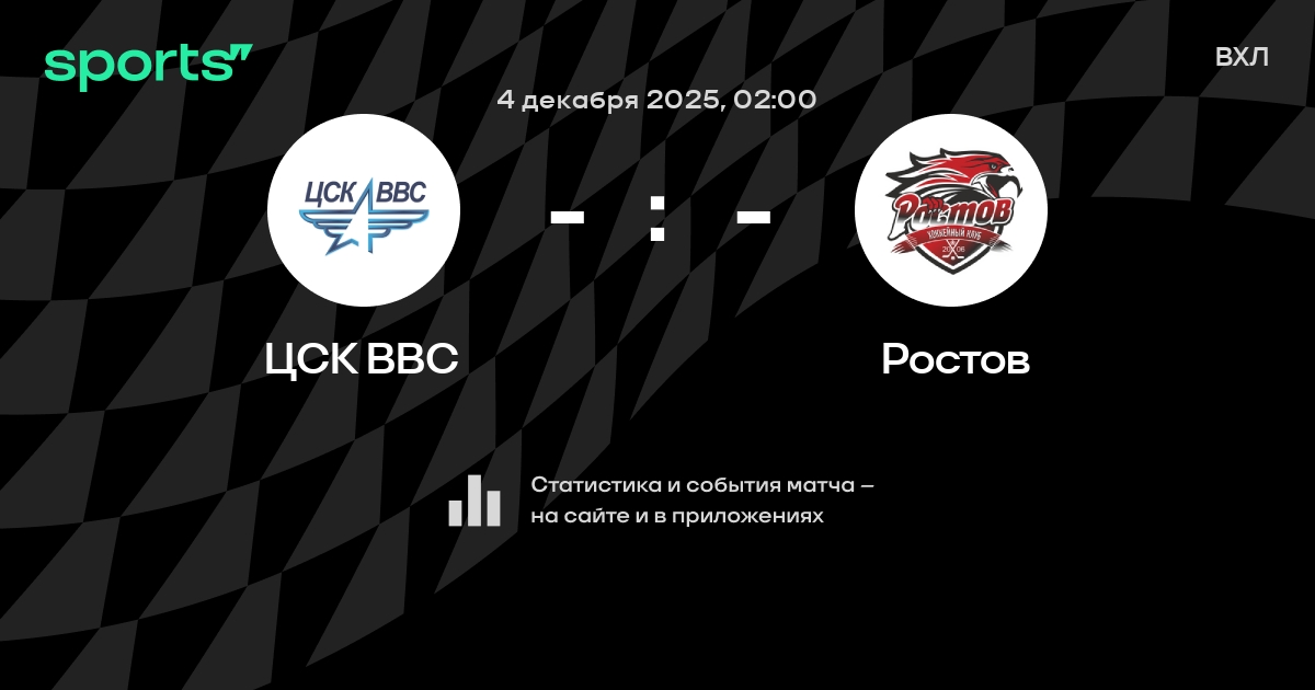 В предстоящем матче в рамках турнира ВХЛ пройдет встреча команд ЦСК ВВС - Ростов в городе на стадионе Dvorets sporta im. V. S. Vysotskogo.