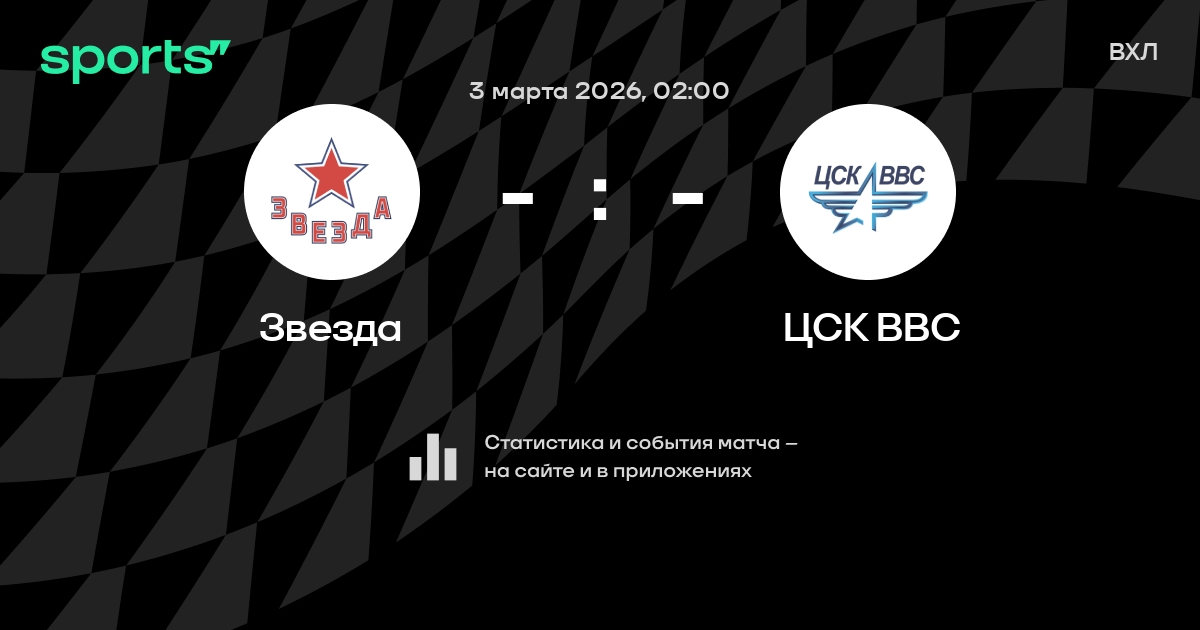 В предстоящем матче в рамках турнира ВХЛ пройдет встреча команд Звезда - ЦСК ВВС в городе Москва (Россия) на стадионе ЦСКА-Арена.