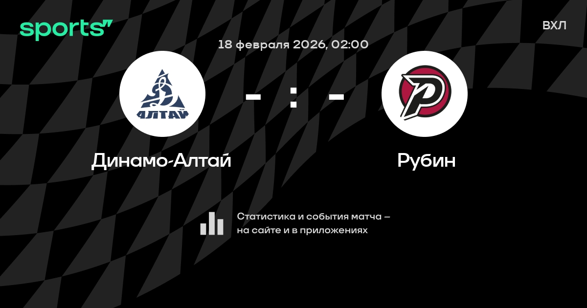 В предстоящем матче в рамках турнира ВХЛ пройдет встреча команд Динамо-Алтай - Рубин в городе на стадионе Ledovyy dvorets im. G. Titov.