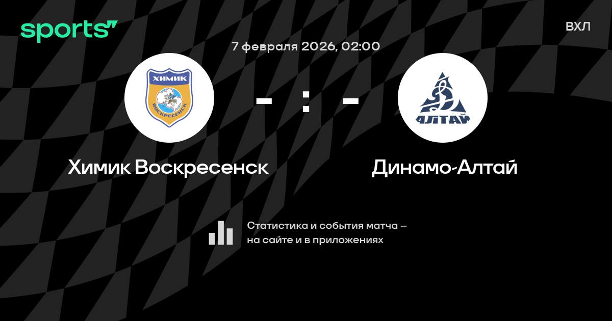 В предстоящем матче в рамках турнира ВХЛ пройдет встреча команд Химик Воскресенск - Динамо-Алтай в городе на стадионе Podmoskovie Ice Palace.
