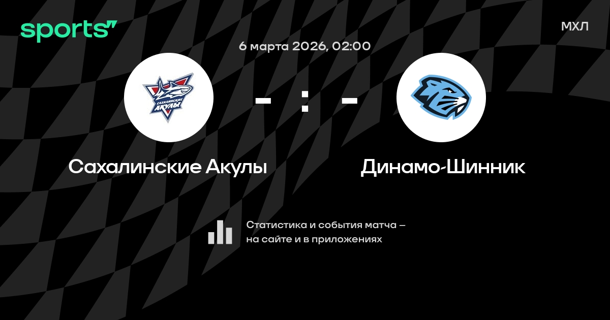 В предстоящем матче в рамках турнира МХЛ пройдет встреча команд Сахалинские Акулы - Динамо-Шинник в городе на стадионе Arena City Yuzhno-Sakhalinsk.