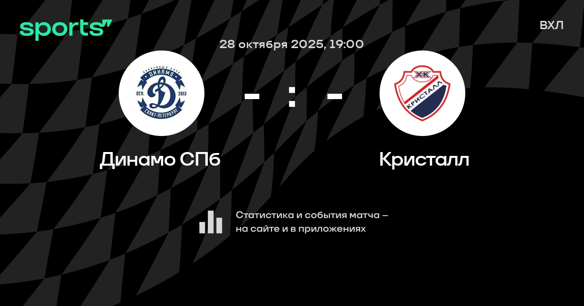 В предстоящем матче в рамках турнира ВХЛ пройдет встреча команд Динамо СПб - Кристалл в городе на стадионе Yubileyny Sports Palace.