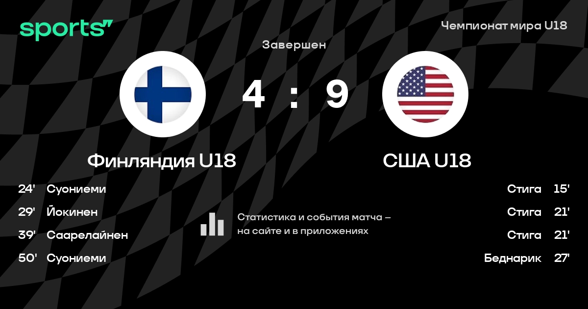 В прошедшем матче в рамках турнира Чемпионат мира U18 Группа A состоялась встреча команд Финляндия U18 - США U18 в городе Эспоо (Финляндия) на стадионе Эспоо Метро Арена (вместимость - 7017)