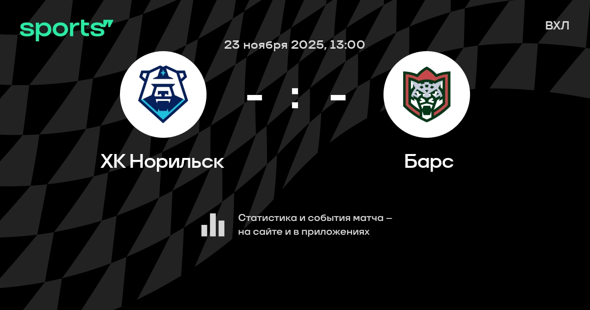 В предстоящем матче в рамках турнира ВХЛ пройдет встреча команд ХК Норильск - Барс в городе на стадионе Dvorets Sporta Arktika.
