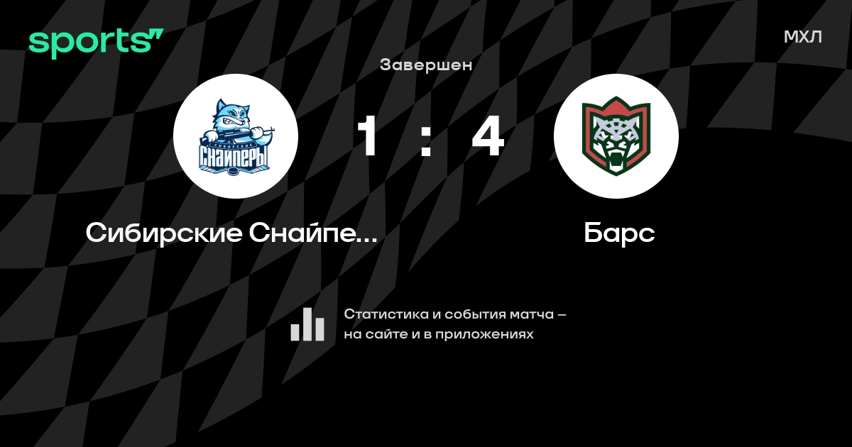 В прошедшем матче в рамках турнира МХЛ состоялась встреча команд Сибирские Снайперы - Барс со счетом 1 : 4.