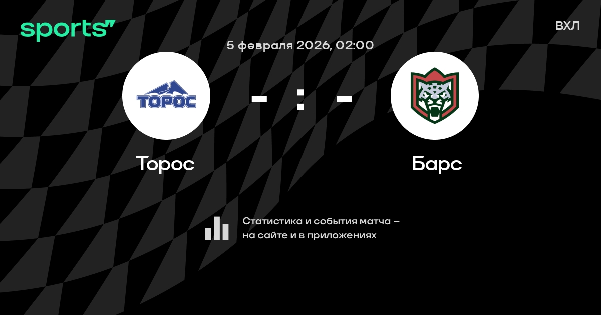 В предстоящем матче в рамках турнира ВХЛ пройдет встреча команд Торос - Барс в городе на стадионе Ledovyy Dvorets.