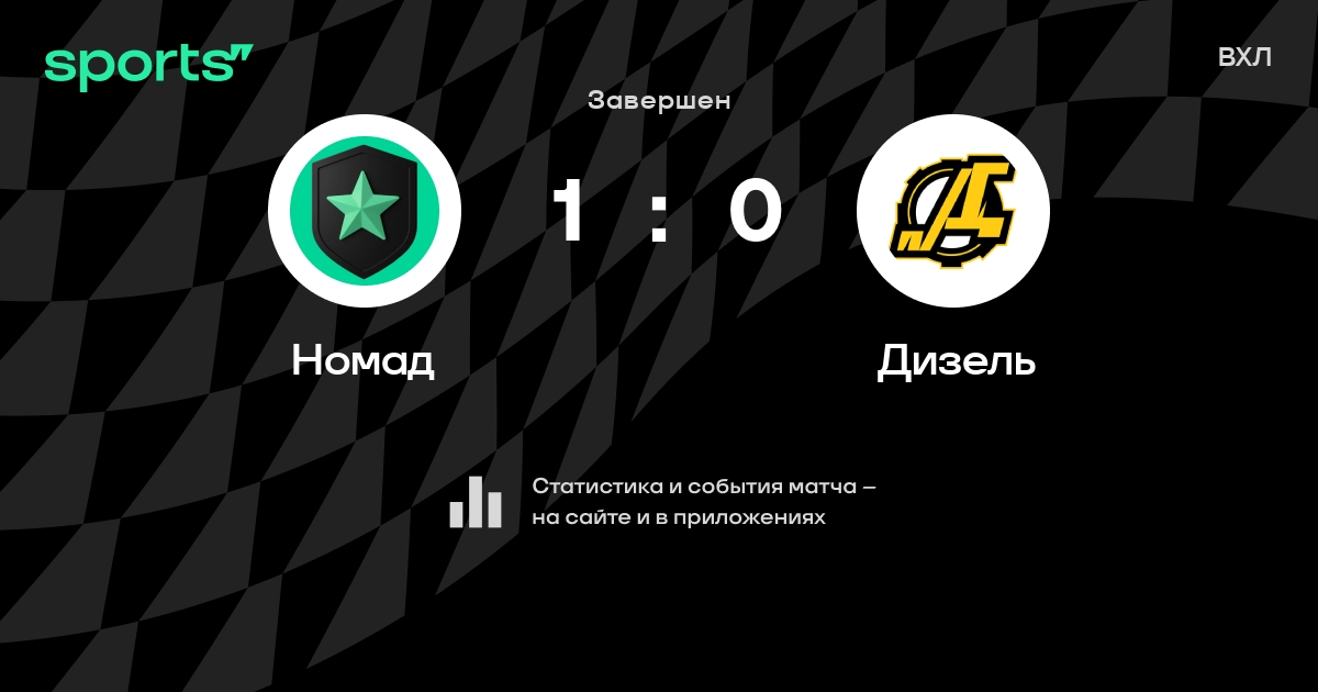 В прошедшем матче в рамках турнира ВХЛ состоялась встреча команд Номад - Дизель со счетом 1 : 0.