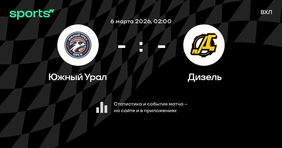 В предстоящем матче в рамках турнира ВХЛ пройдет встреча команд Южный Урал - Дизель в городе на стадионе Ice Palace Yubileyny.