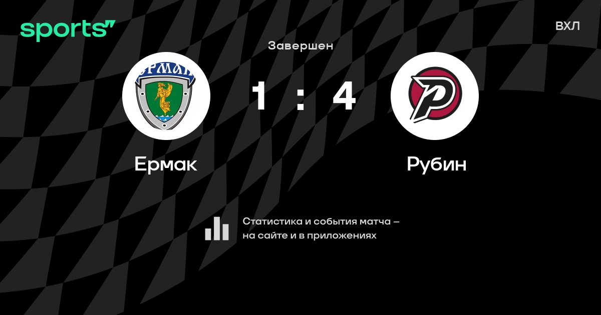 В прошедшем матче в рамках турнира ВХЛ состоялась встреча команд Ермак - Рубин в городе на стадионе Zimniy Dvorets Sporta Yermak со счетом 1 : 4.