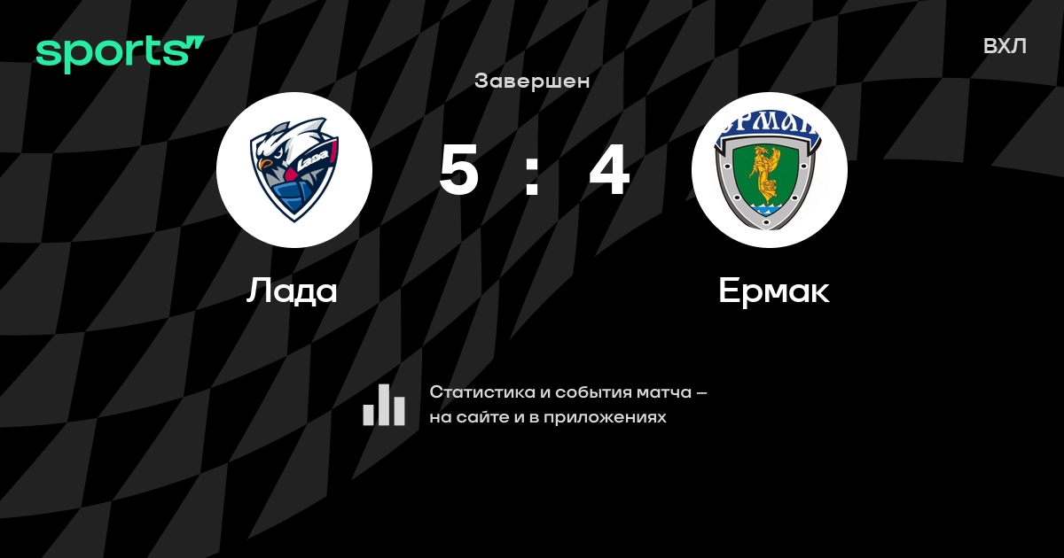 В прошедшем матче в рамках турнира ВХЛ состоялась встреча команд Лада - Ермак в городе Тольятти (Россия) на стадионе Лада-Арена (вместимость - 6000) со счетом 5 : 4.