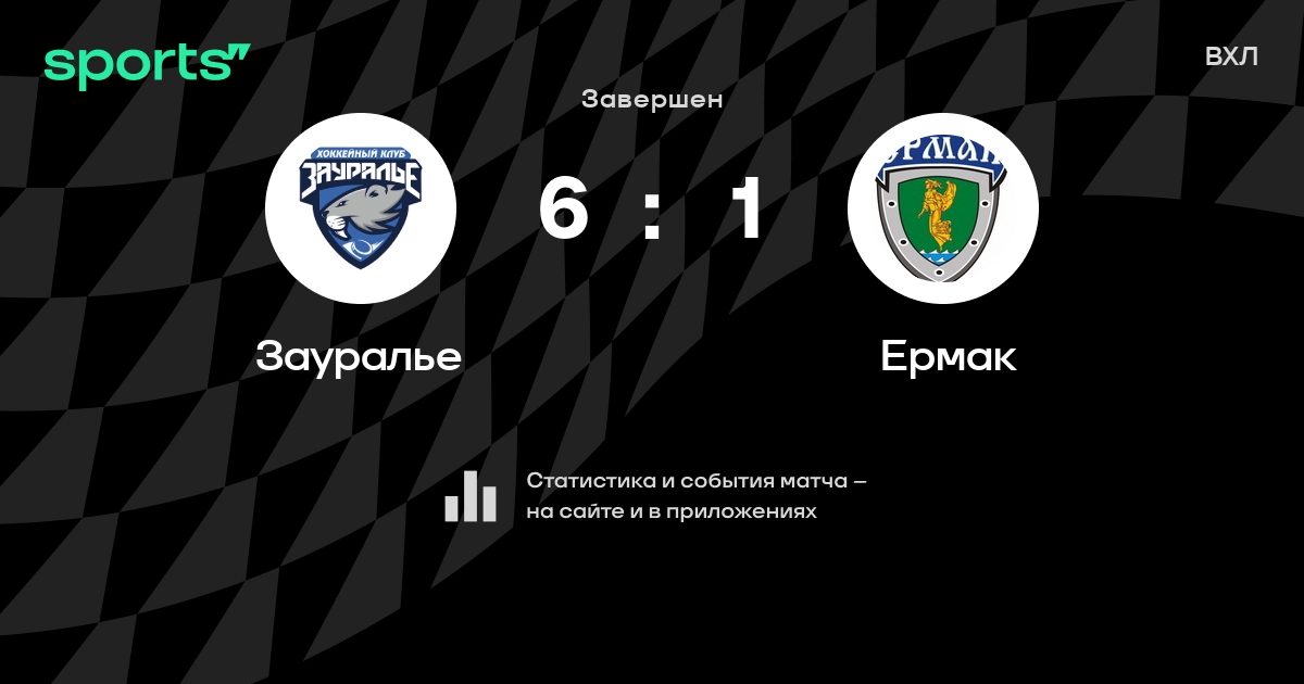 В прошедшем матче в рамках турнира ВХЛ состоялась встреча команд Зауралье - Ермак в городе на стадионе Ledovyy Dvorets Sporta Im. N.v. Parysheva со счетом 6 : 1.