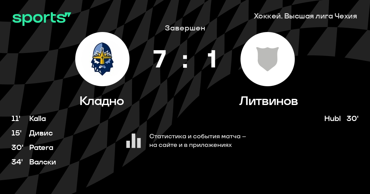 В прошедшем матче в рамках турнира Хоккей. Высшая лига Чехия состоялась встреча команд Кладно - Литвинов со счетом 7 : 1.