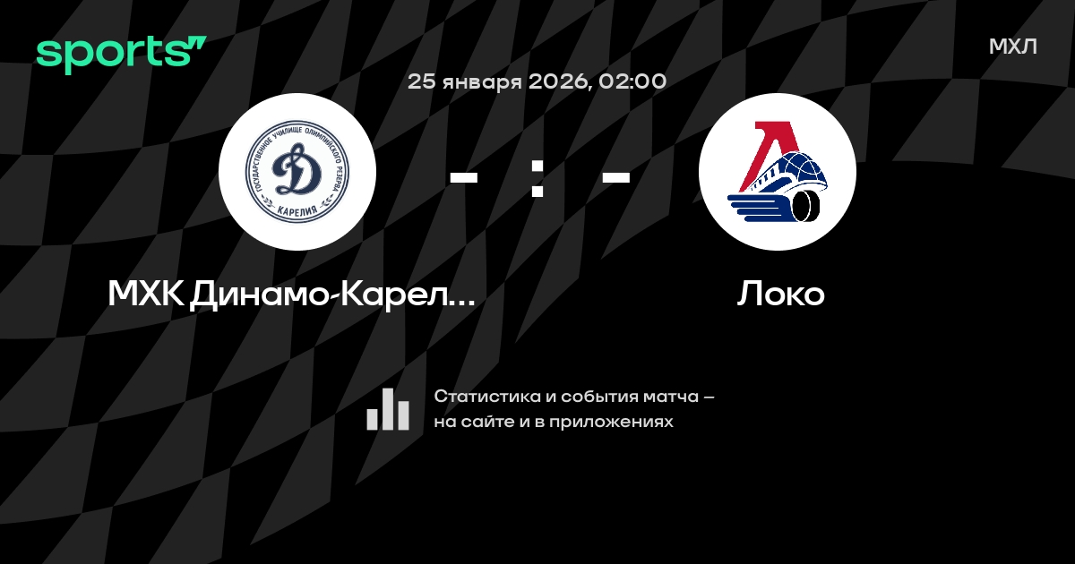 В предстоящем матче в рамках турнира МХЛ пройдет встреча команд МХК Динамо-Карелия - Локо .