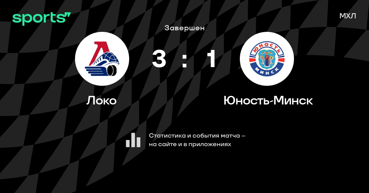 В прошедшем матче в рамках турнира МХЛ состоялась встреча команд Локо - Юность-Минск со счетом 3 : 1.