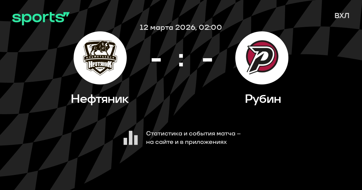 В предстоящем матче в рамках турнира ВХЛ пройдет встреча команд Нефтяник - Рубин в городе на стадионе Dvorets Sporta Yubileynyy.