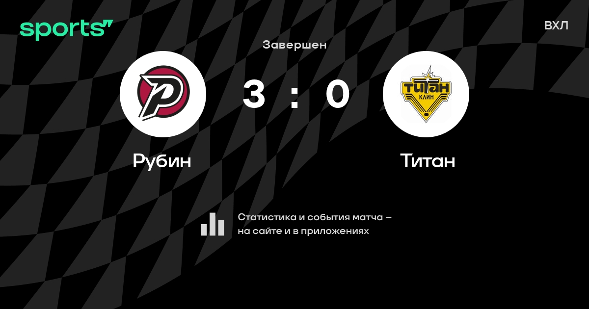 В прошедшем матче в рамках турнира ВХЛ состоялась встреча команд Рубин - Титан со счетом 3 : 0.