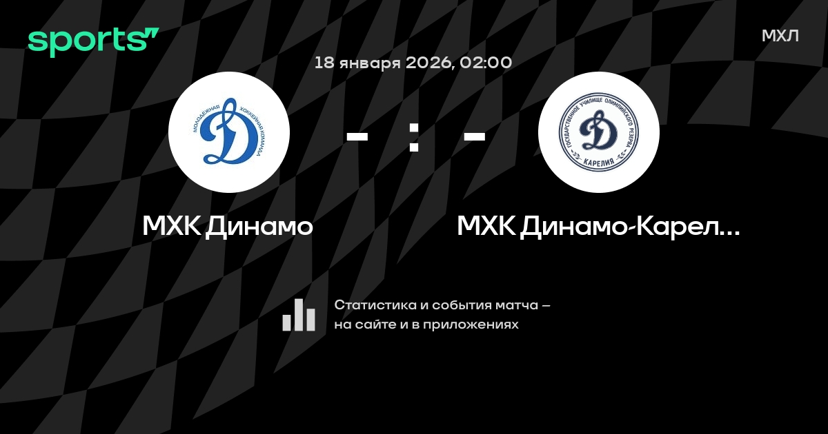 В предстоящем матче в рамках турнира МХЛ пройдет встреча команд МХК Динамо - МХК Динамо-Карелия .