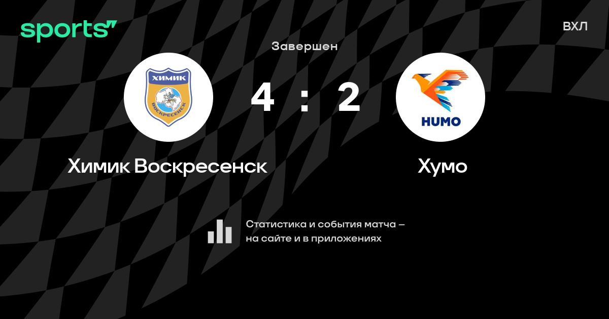 В прошедшем матче в рамках турнира ВХЛ состоялась встреча команд Химик Воскресенск - Хумо со счетом 4 : 2.