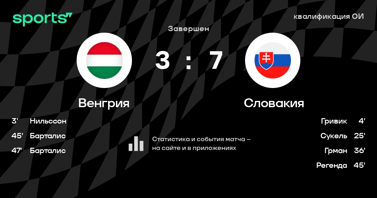 В прошедшем матче в рамках турнира квалификация ОИ состоялась встреча команд Венгрия - Словакия в городе на стадионе Zimný štadión Ondreja Nepelu со счетом 3 : 7.