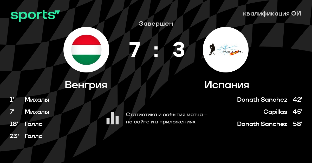 В прошедшем матче в рамках турнира квалификация ОИ состоялась встреча команд Венгрия - Испания в городе на стадионе Tüskecsarnok со счетом 7 : 3.