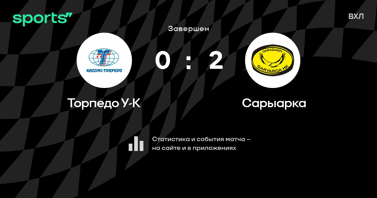 В прошедшем матче в рамках турнира ВХЛ состоялась встреча команд Торпедо У-К - Сарыарка со счетом 0 : 2.