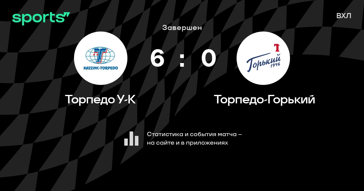 В прошедшем матче в рамках турнира ВХЛ состоялась встреча команд Торпедо У-К - Торпедо-Горький со счетом 6 : 0.