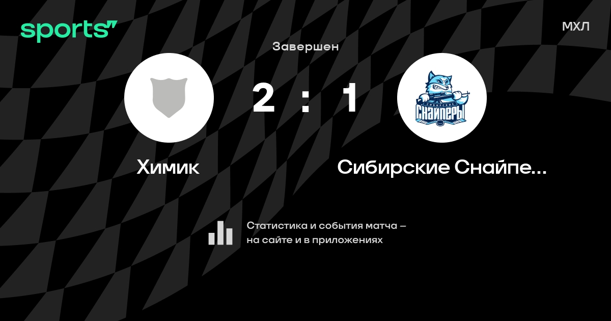 В прошедшем матче в рамках турнира МХЛ состоялась встреча команд Химик - Сибирские Снайперы со счетом 2 : 1.