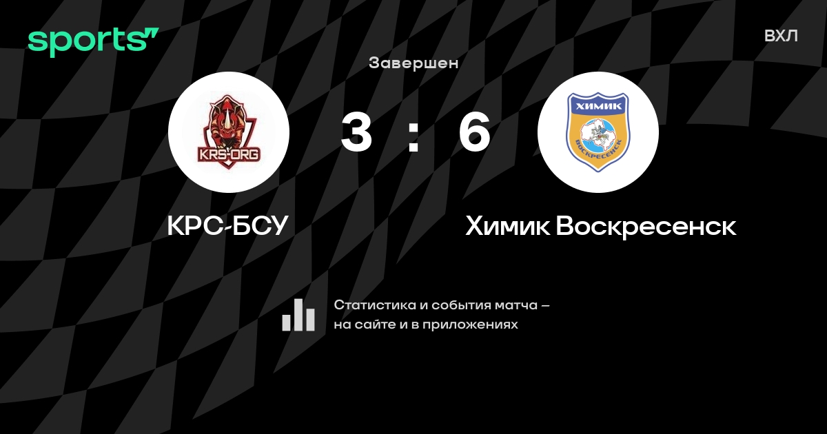 В прошедшем матче в рамках турнира ВХЛ состоялась встреча команд КРС-БСУ - Химик Воскресенск со счетом 3 : 6.