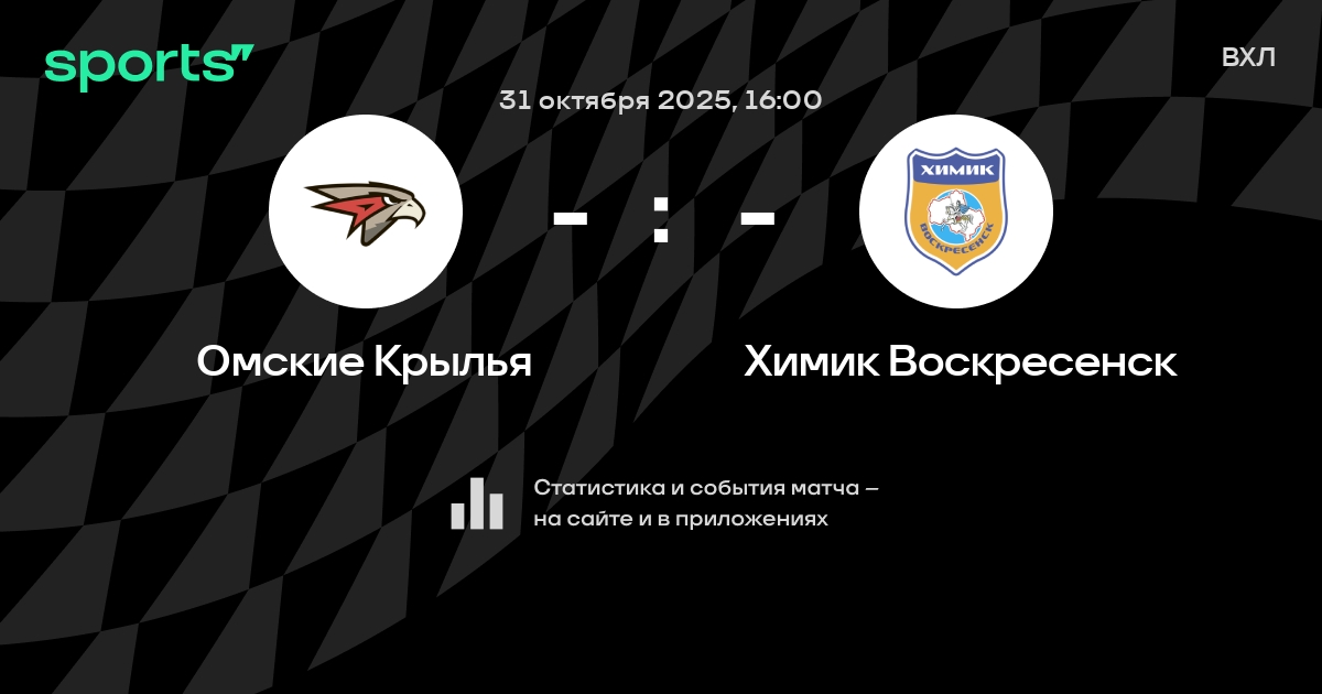 В предстоящем матче в рамках турнира ВХЛ пройдет встреча команд Омские Крылья - Химик Воскресенск в городе на стадионе Avangard Hockey Academy.