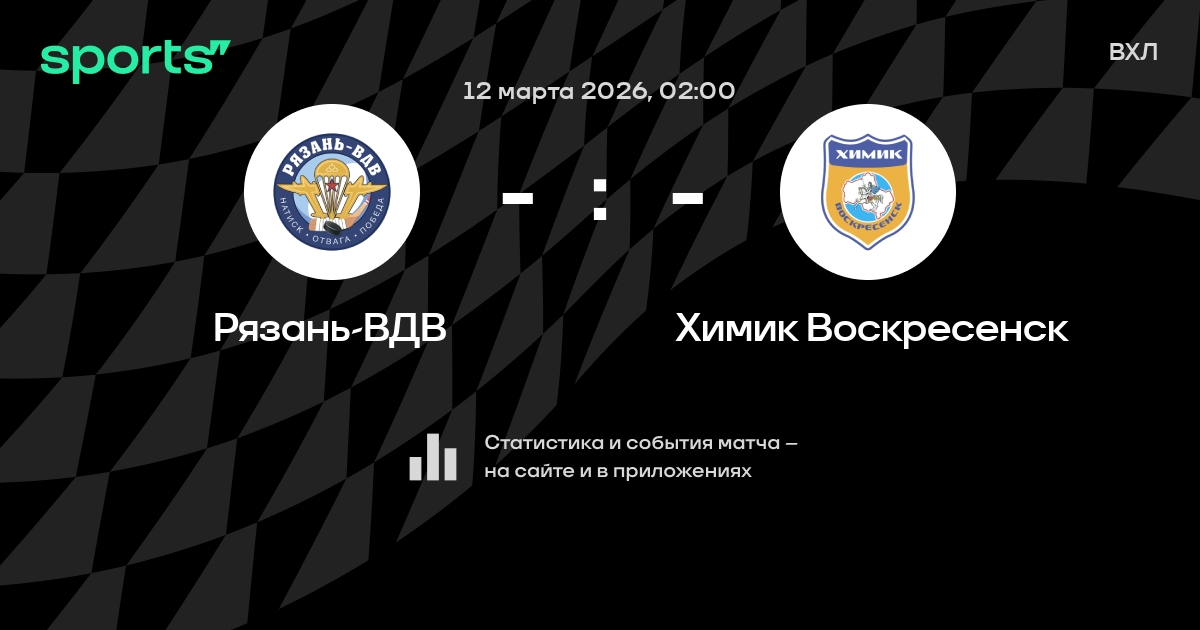 В предстоящем матче в рамках турнира ВХЛ пройдет встреча команд Рязань-ВДВ - Химик Воскресенск в городе на стадионе The Palace of sports Olimpiyskiy.