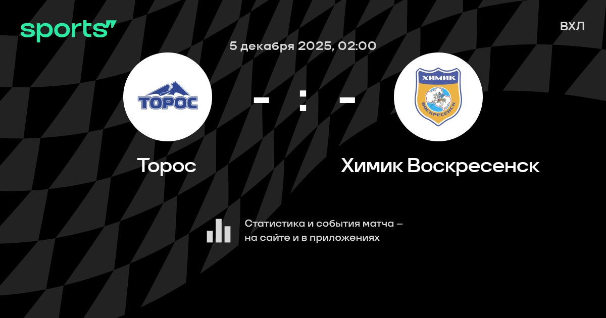 В предстоящем матче в рамках турнира ВХЛ пройдет встреча команд Торос - Химик Воскресенск в городе на стадионе Ledovyy Dvorets.