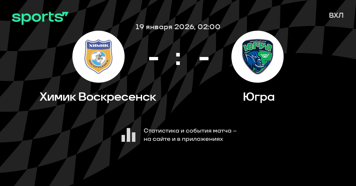 В предстоящем матче в рамках турнира ВХЛ пройдет встреча команд Химик Воскресенск - Югра в городе на стадионе Podmoskovie Ice Palace.