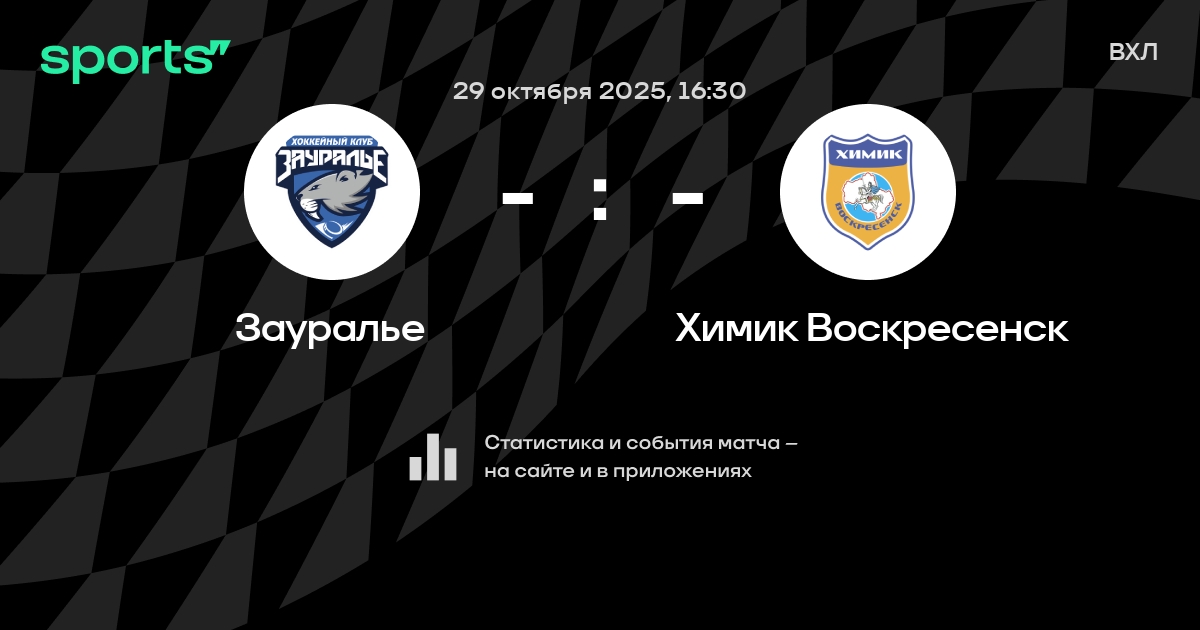 В предстоящем матче в рамках турнира ВХЛ пройдет встреча команд Зауралье - Химик Воскресенск в городе на стадионе Ledovyy Dvorets Sporta Im. N.v. Parysheva.