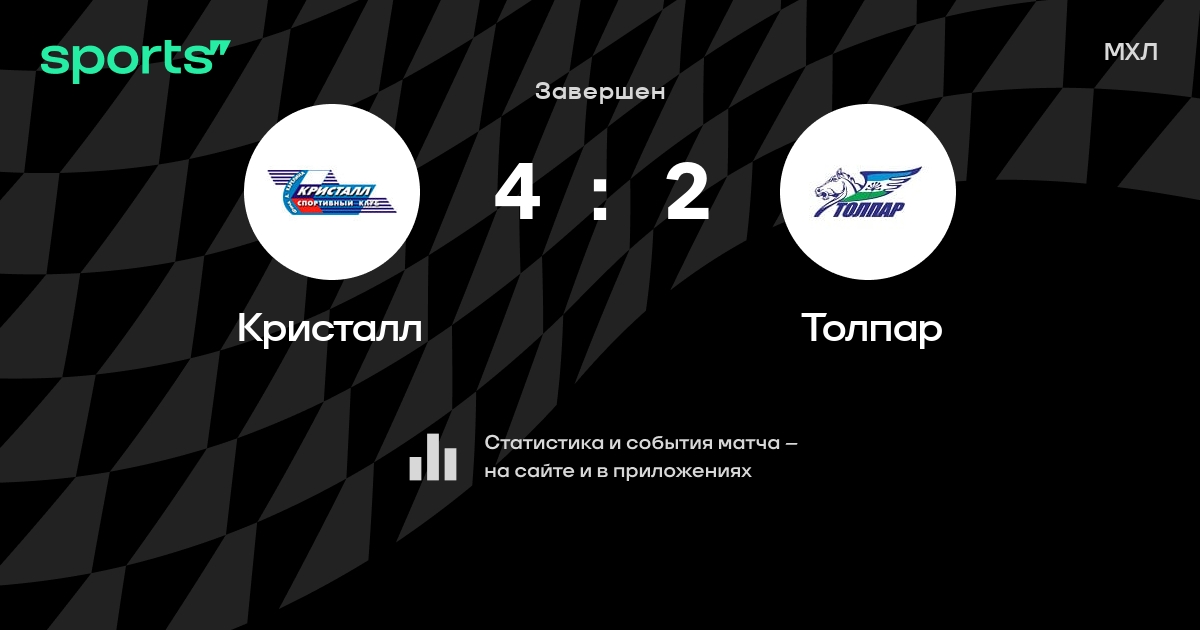 В прошедшем матче в рамках турнира МХЛ состоялась встреча команд Кристалл - Толпар со счетом 4 : 2.