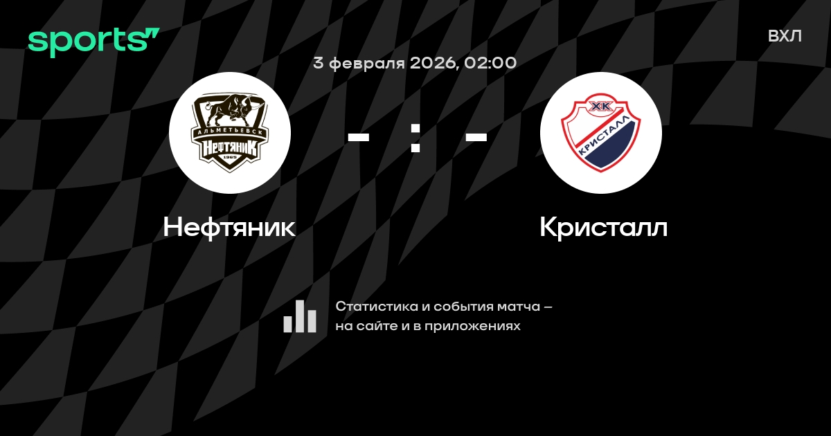 В предстоящем матче в рамках турнира ВХЛ пройдет встреча команд Нефтяник - Кристалл в городе на стадионе Dvorets Sporta Yubileynyy.