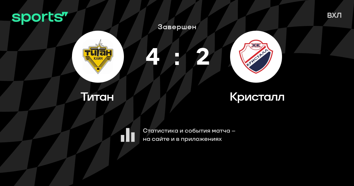 В прошедшем матче в рамках турнира ВХЛ состоялась встреча команд Титан - Кристалл со счетом 4 : 2.