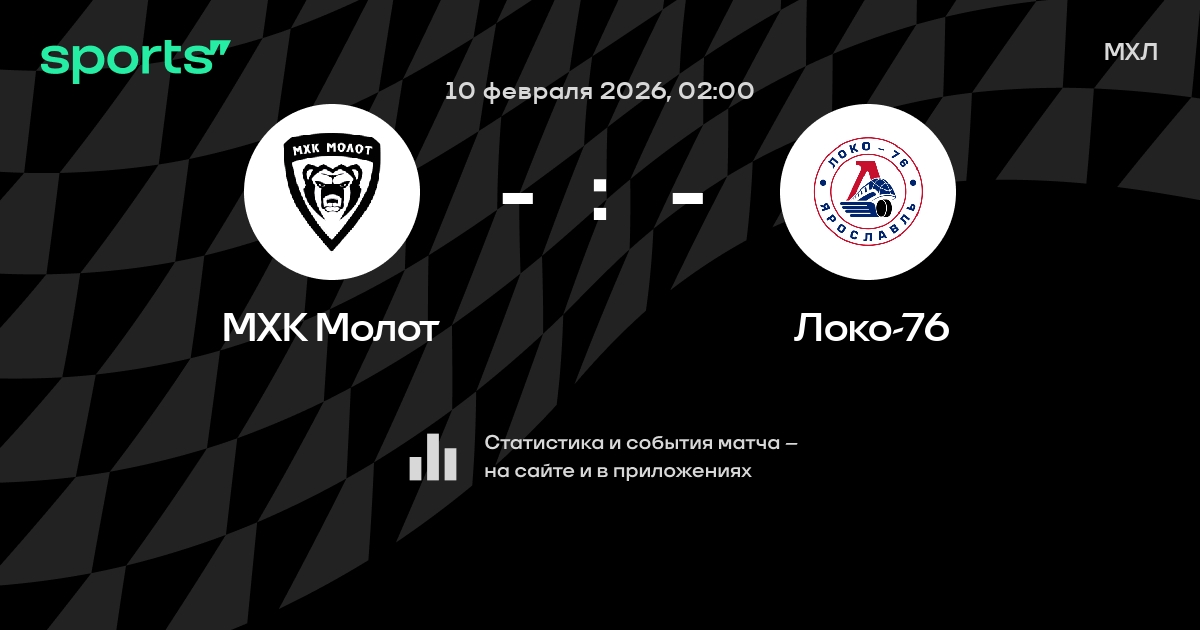 В предстоящем матче в рамках турнира МХЛ пройдет встреча команд МХК Молот - Локо-76 в городе на стадионе Molot.