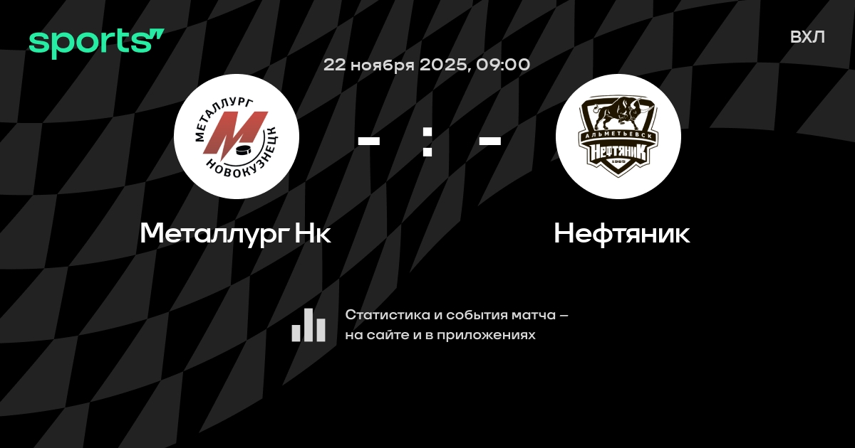 В предстоящем матче в рамках турнира ВХЛ пройдет встреча команд Металлург Нк - Нефтяник в городе на стадионе Dvorets sporta Kuznetsk Metallurg.