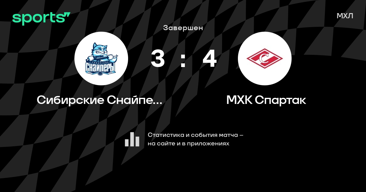 В прошедшем матче в рамках турнира МХЛ состоялась встреча команд Сибирские Снайперы - МХК Спартак со счетом 3 : 4.