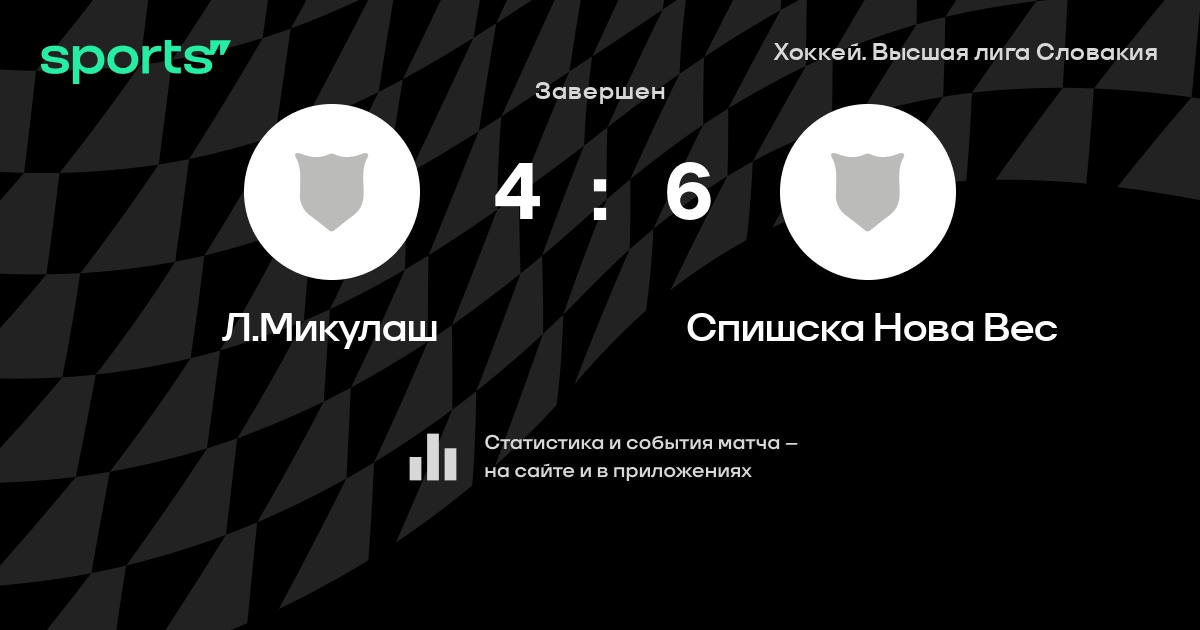 В прошедшем матче в рамках турнира Хоккей. Высшая лига Словакия состоялась встреча команд Л.Микулаш - Спишска Нова Вес со счетом 4 : 6.