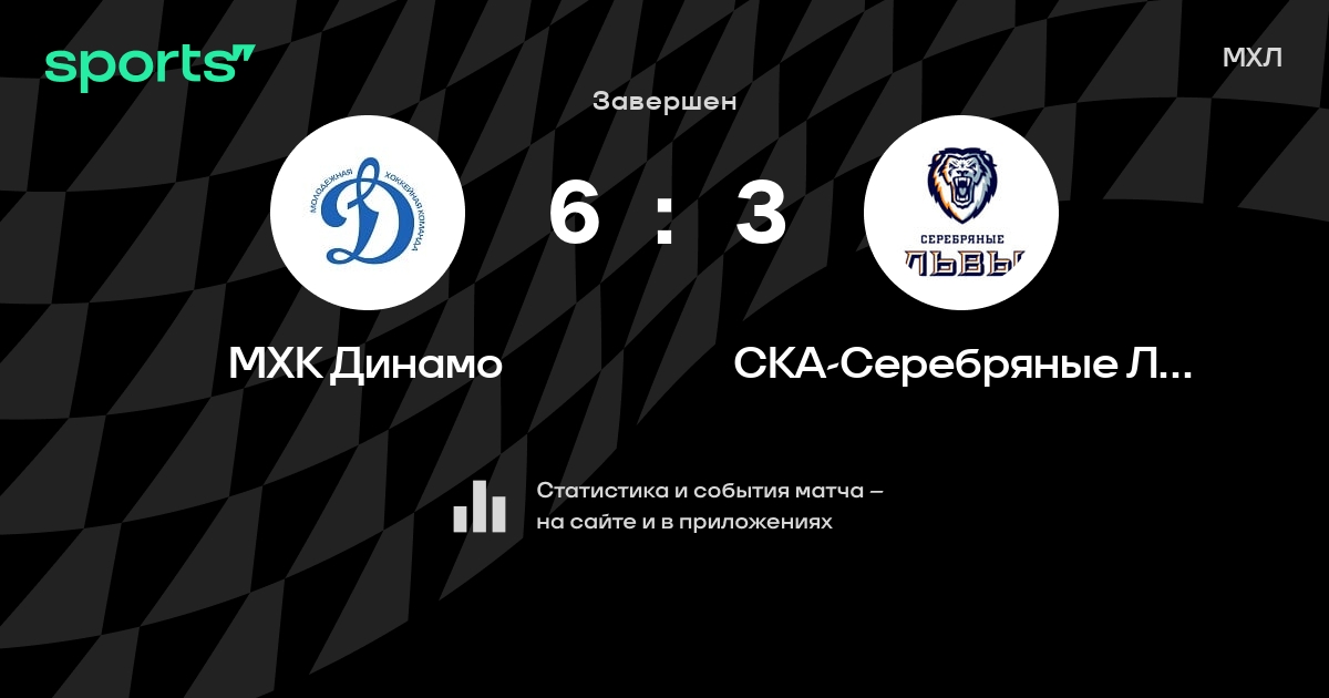 В прошедшем матче в рамках турнира МХЛ состоялась встреча команд МХК Динамо - СКА-Серебряные Львы со счетом 6 : 3.