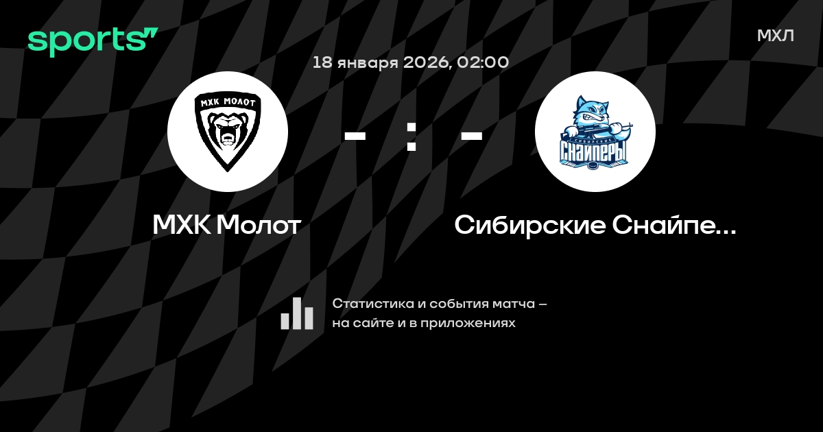 В предстоящем матче в рамках турнира МХЛ пройдет встреча команд МХК Молот - Сибирские Снайперы в городе на стадионе Molot.