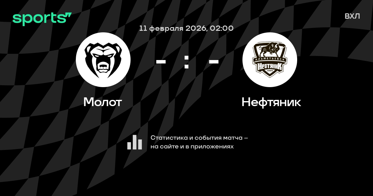 В предстоящем матче в рамках турнира ВХЛ пройдет встреча команд Молот - Нефтяник в городе на стадионе Molot.