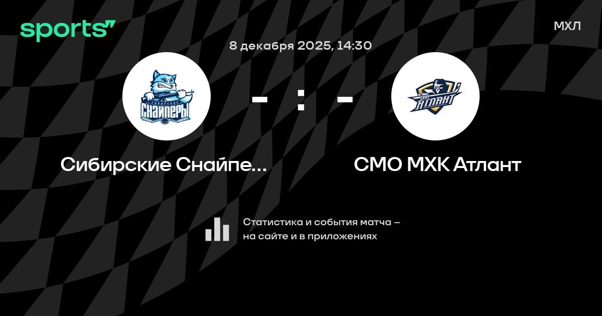 В предстоящем матче в рамках турнира МХЛ пройдет встреча команд Сибирские Снайперы - СМО МХК Атлант в городе Новосибирск (Россия) на стадионе Арена-Сибирь (вместимость - 10587).