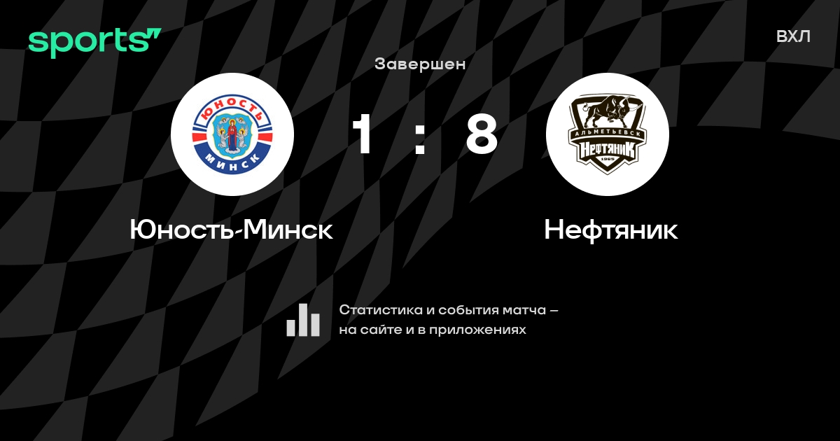 В прошедшем матче в рамках турнира ВХЛ состоялась встреча команд Юность-Минск - Нефтяник со счетом 1 : 8.