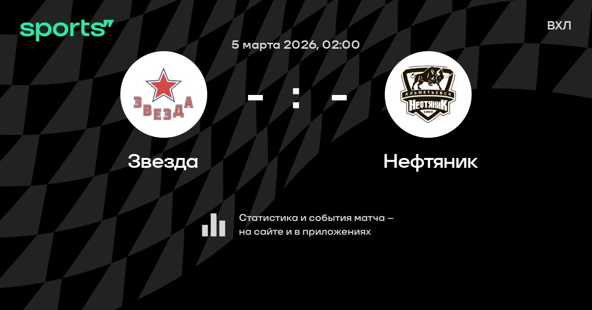 В предстоящем матче в рамках турнира ВХЛ пройдет встреча команд Звезда - Нефтяник в городе Москва (Россия) на стадионе ЦСКА-Арена.