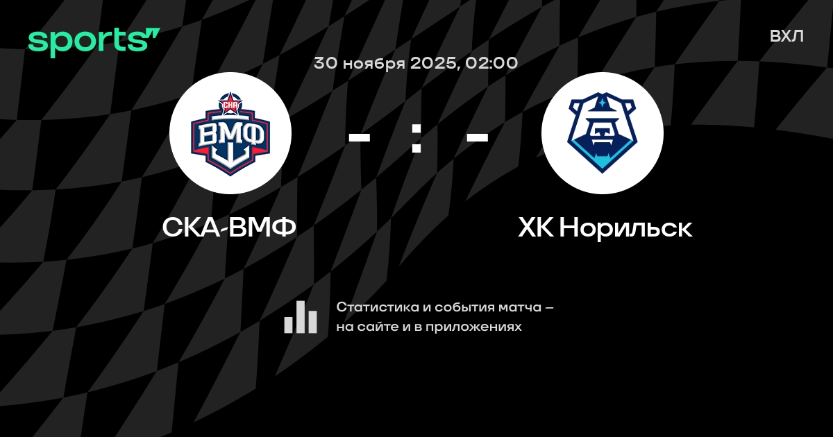 В предстоящем матче в рамках турнира ВХЛ пройдет встреча команд СКА-ВМФ - ХК Норильск в городе на стадионе Hockey City.