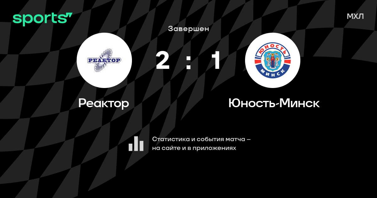 В прошедшем матче в рамках турнира МХЛ состоялась встреча команд Реактор - Юность-Минск со счетом 2 : 1.